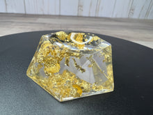 Stand is made from resin & measures 1.5" across and almost an inch high.