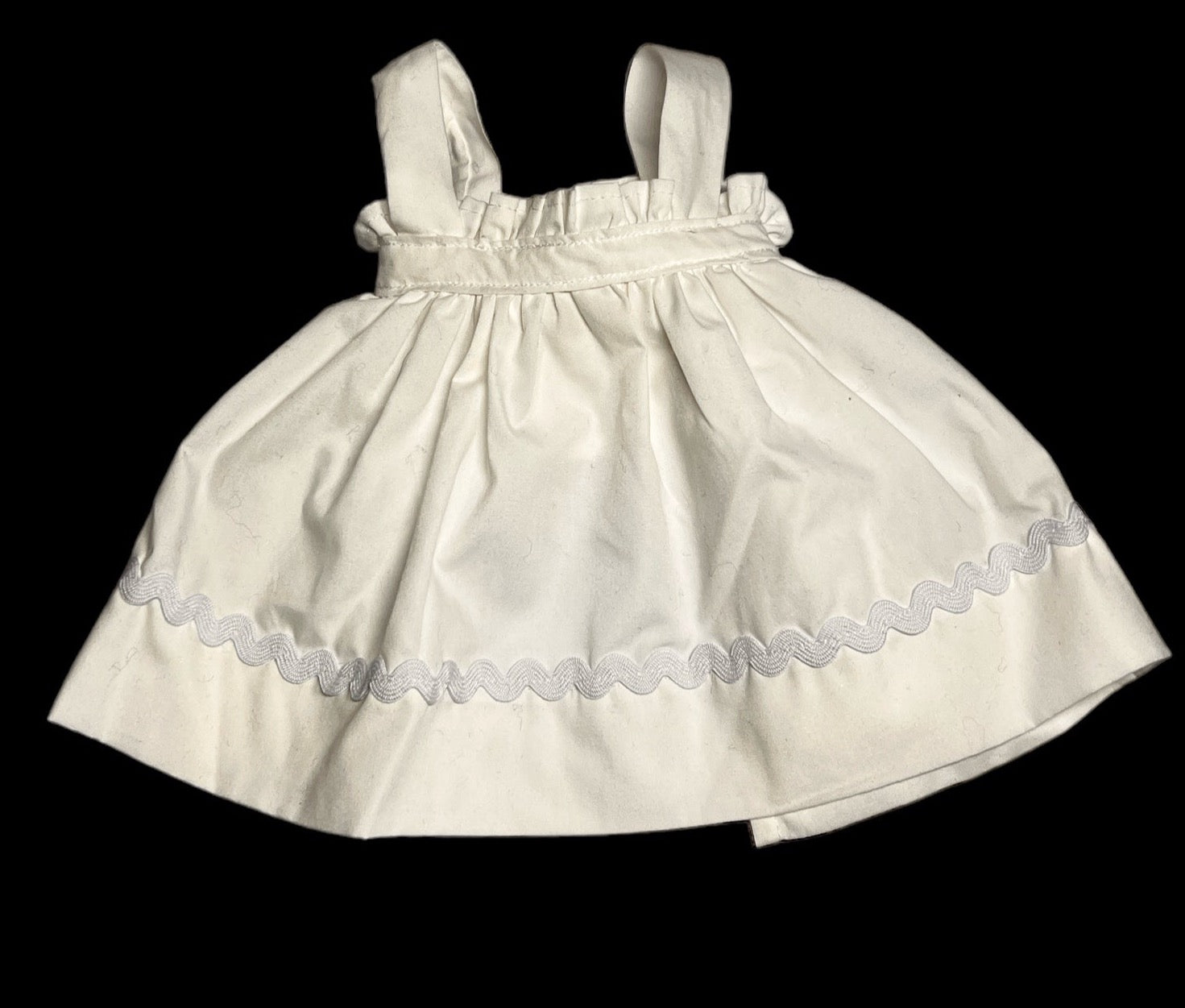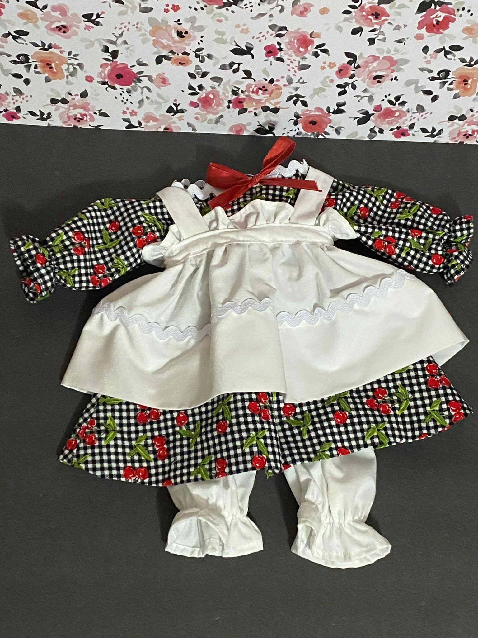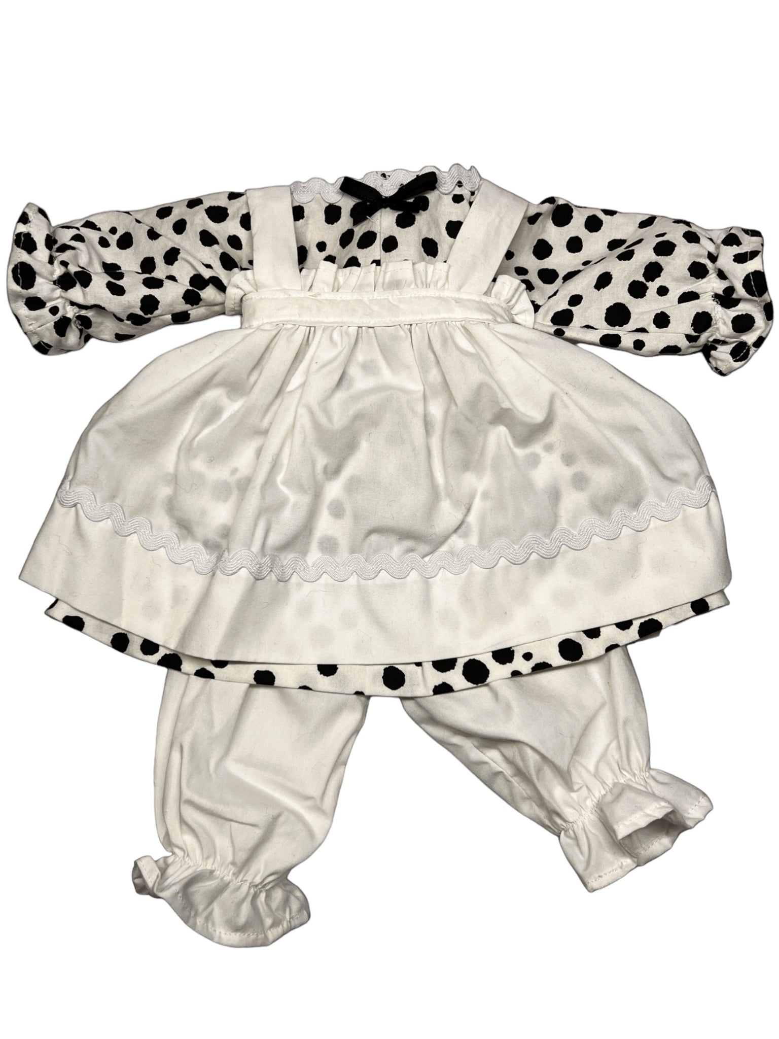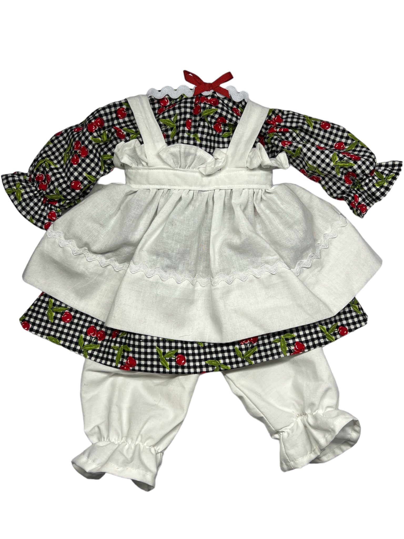 It's best (but not necessary) to contact me before ordering with fabric choice(s) if you wanting a custom clothes look and are not sure. You'll have to pick colors/pattern for the dress, bloomers, & apron for girl, or for boy pant color & shirt color or pattern (hat will match), or if wanting a more traditional look for girl list white for apron & bloomers & then your choice of dress fabric or for boy lost pant color & shirt pattern. I will also need your custom dolls neck measurements to insure a proper fit.